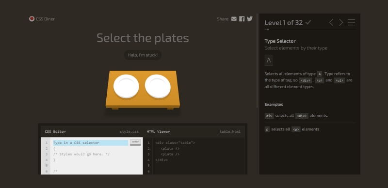 This is a fantastic dining experience for programmers, particularly CSS beginners. CSS Diner is a free open-source design game hosted by Luke Pacholski of GitHub. In this game, a player selects elements from the menu using the appropriate CSS selector.